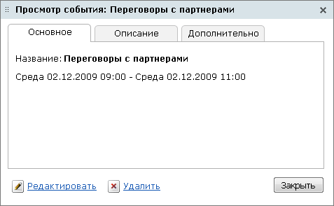 Точно так же вы сможете изменять и удалять события - как календарях MS Outlook, так и в календарях на Портале. И изменения двусторонне синхронизируются! Теперь вы уже в курсе, что это значит: сразу же произойдет автоматическая синхронизация и событие изменится или удалится - в MS Outlook или на Портале.